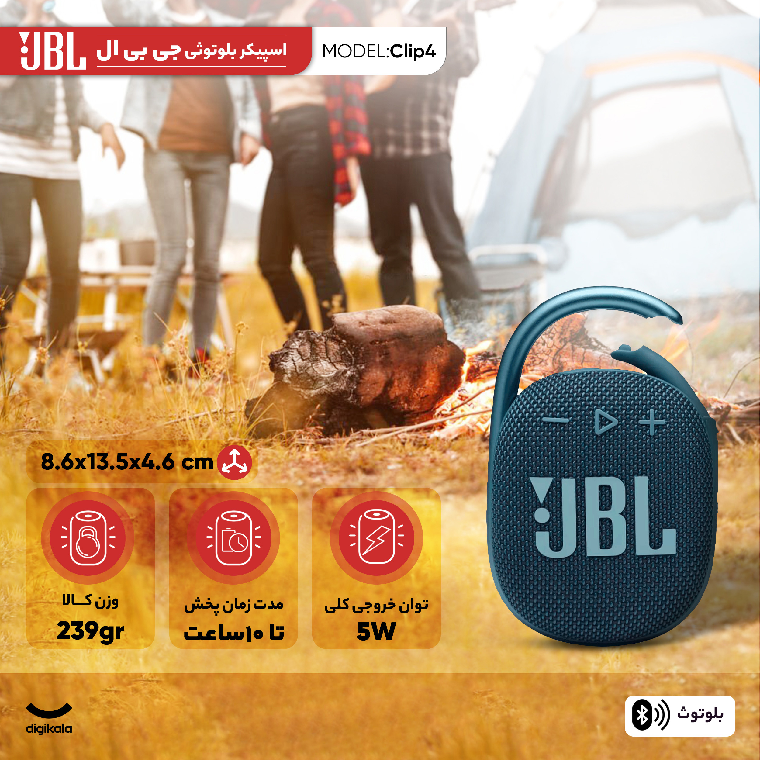 اسپیکر بلوتوثی قابل حمل جیبیال مدل Clip 4، یک محصول بینظیر و استادانه در کلاس خود است که با موفقیت، قابلیت حمل فوقالعاده با کارابین نمادین، کیفیت صدای شگفتانگیز JBL Original Pro Sound نسبت به ابعاد، مقاومت کامل در برابر آب و گرد و غبار با استاندارد IP67، عمر باتری طولانی و اتصال بلوتوثی پایدار و کاربردی را در یک پکیج جذاب، رنگارنگ و بسیار دوستداشتنی گرد هم آورده است. Clip 4 برای افرادی که به دنبال یک همراه صوتی کوچک، سبک، بادوام، باکیفیت و همهفنحریف برای تمام لحظات زندگی خود، از فعالیتهای روزمره و ورزش گرفته تا ماجراجوییهای هیجانانگیز در طبیعت و سفرها هستند، انتخابی بیرقیب و بسیار هوشمندانه است. این اسپیکر کوچک، با صدای بزرگ و قلب ماجراجوی خود، آماده است تا هر لحظهی شما را با موسیقی، خاطرهانگیزتر کند.