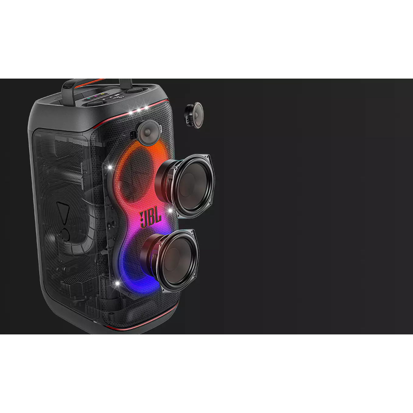یکی از مهمترین ویژگیهای هر اسپیکر، کیفیت صدای آن است. اسپیکر PartyBox Club 120 دارای دو ووفر ۵.۲۵ اینچی و دو توییتر ۲.۲۵ اینچی است که توان خروجی کلی آن به ۱۶۰ وات میرسد. این توان خروجی باعث میشود که صدا در فضاهای بزرگ به راحتی پخش شود و حتی در فواصل دور نیز کیفیت خود را حفظ کند. سیستم صوتی این اسپیکر به گونهای طراحی شده است که صدای بیس عمیق و برجستهای را تولید میکند که مخصوصاً برای علاقهمندان به سبکهای موسیقی پُر انرژی و پر سر و صدا مانند EDM، هیپ هاپ، راک و پاپ ایدهآل است. همچنین، بلندگو از فناوریهای صوتی پیشرفته برای ایجاد تعادل مناسب بین فرکانسهای بالا و پایین بهره میبرد که باعث میشود صدا در هر فرکانسی واضح و شفاف باشد.