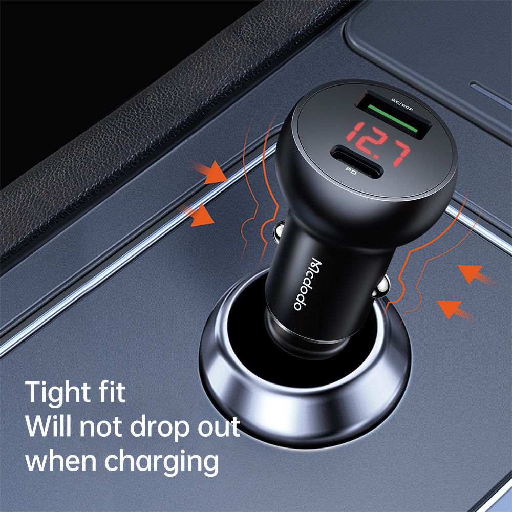 شارژر فندکی 30 وات مک دودو مدل CC-6810 از بدنه ای با جنس آلیاژ آلومینیم و فلزی است.دارای 2 پورت خروجی یکی تایپ سی و دیگری USB است.توان خروجی این فندکی مجموعا 30 وات می باشد.این فندکی از فناوری شارژ سریع موبایل آیفون 12 به بالا پشتیبانی میکند.خروجی تایپ سی فندکی: 5V,3A/9V,3A/12V,2.5A/15V,2A/20V,1.5A و خروجی USB : 4.5V,5A/5V,4.5A/5V,3A/9V,3A/12v,2.5A میباشد.این فندکی دارای نشانگر LED ولتاژ نیز میباشد که در تاریکی خودرو براحتی میتوانید با این شارژر فندکی کارکنید.درهنگام شارژ شدن موبایل فندکی را از محل خود خارج نکنید و قبل از خارج کردن فندکی کابل شارژ را از موبایل خود جداکنید.