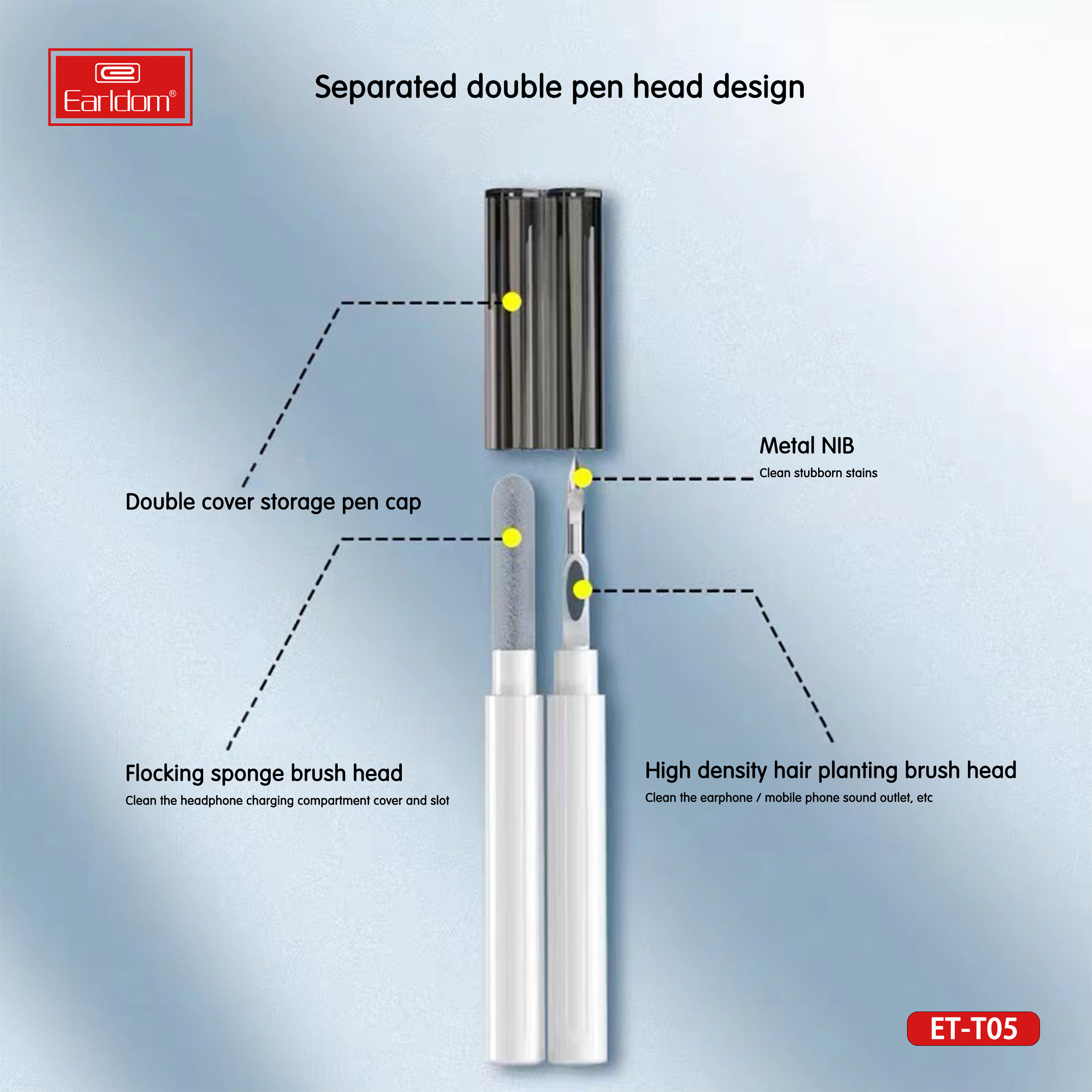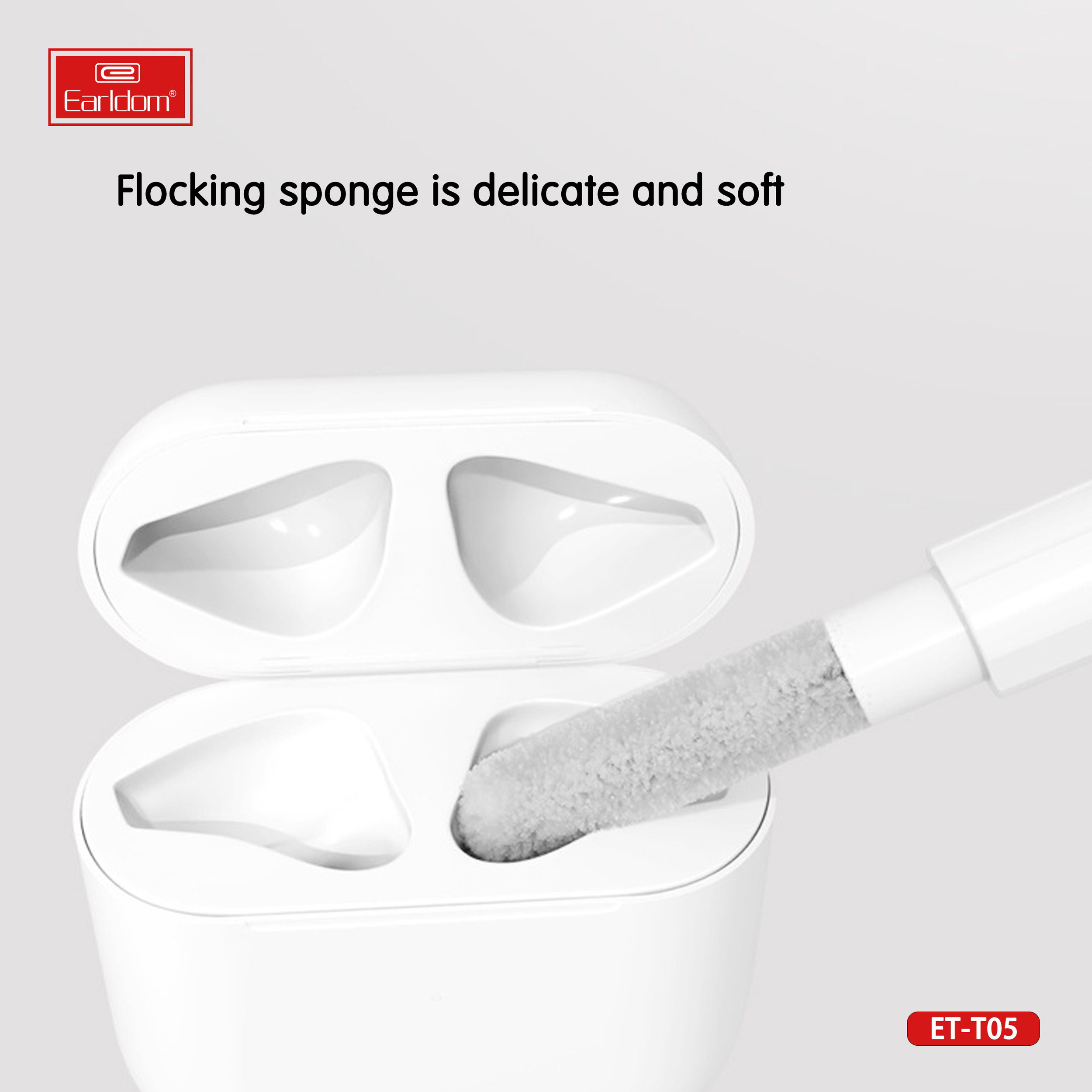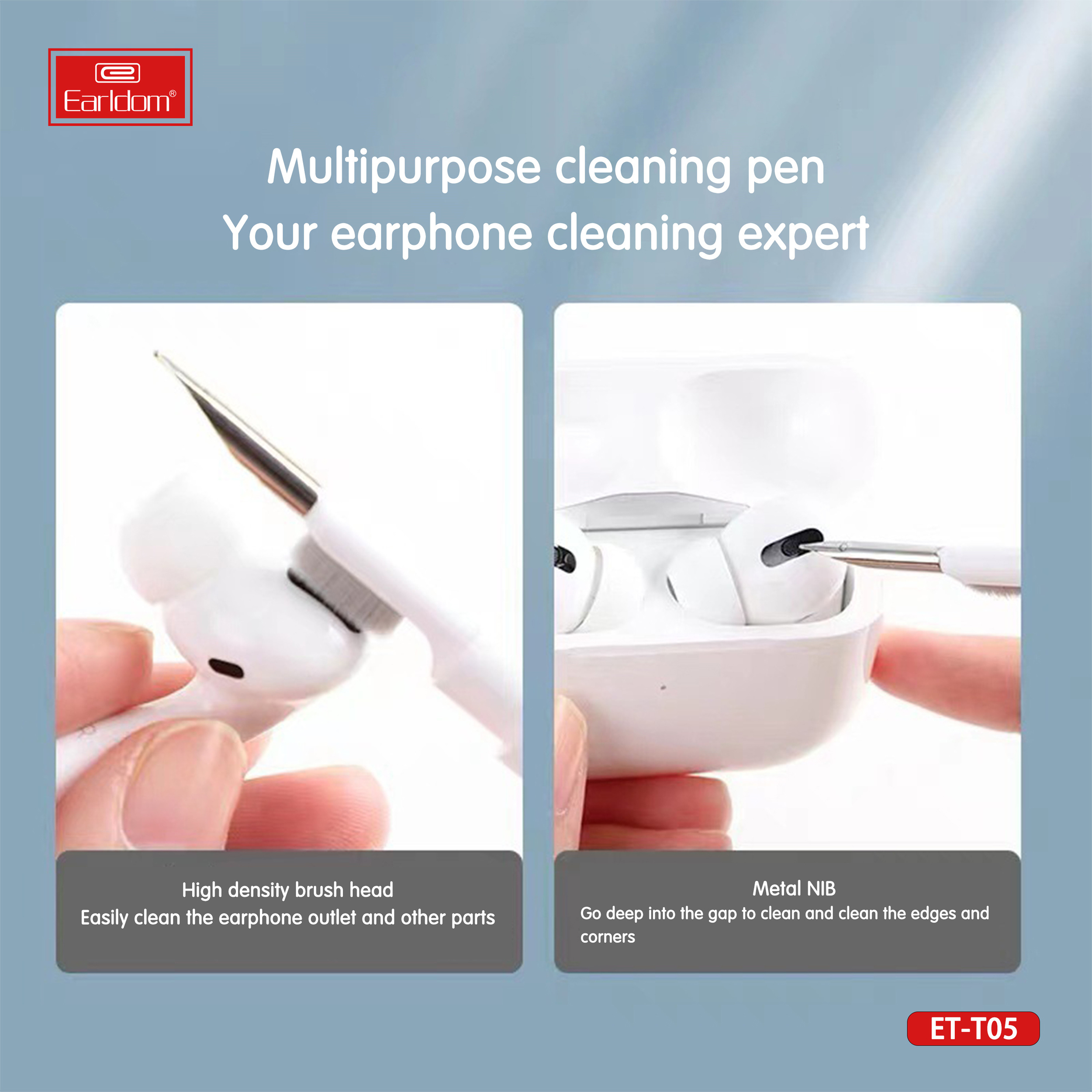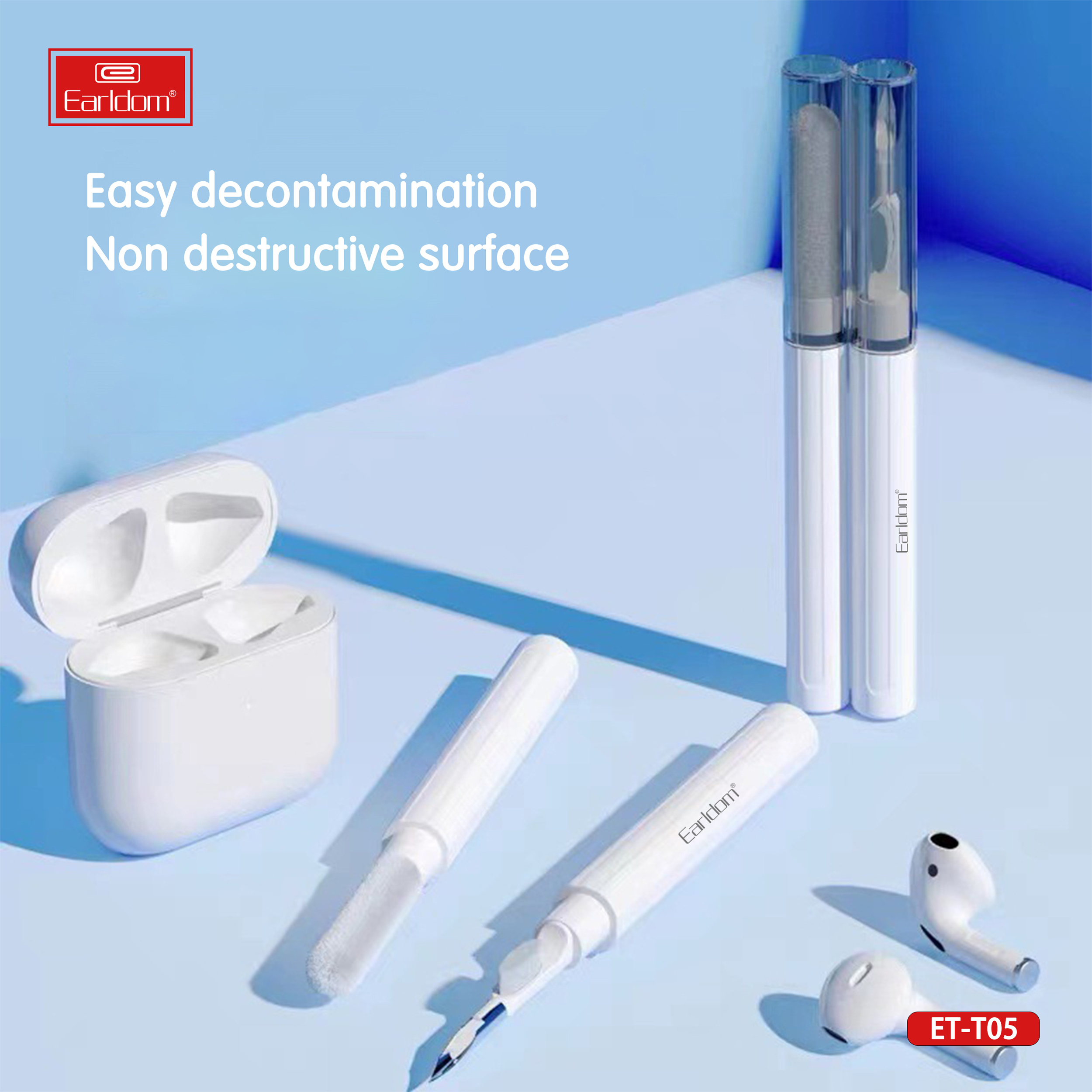 ابزار تمیز کننده ارلدام مدل T05 جهت پاک کردن ایرپاد و جعبه ایرپاد و همچنین نقاط مختلف گوشی موبایل که مستعد جذب و انباشتگی آلودگی مانند اسپیکر و بلندگو و دوربین و سوکت شاژ و …کاربرد دارد و شما را از آلودگی ها و حفظ سلامت شما در عین حفظ کیفیت ایرپاد و گوشی موبایل تولید شده است. با استفاده روزمره از ایرپادهای خود حتما شما هم با مشکل سیاه شدن درب ایرپاد و یا کثیف شدن محفظه ای که گوشی ها در آن قرار میگیرند مواجه شده اید این محصول تماما مشکل کثیفی ایرپاد و گوشی های موبایل و … را بر طرف می کند و با سری های مختلفی که در این مجموعه تنظیف وجود دارد به راحتی میتوان آنها را تمیز نمود.